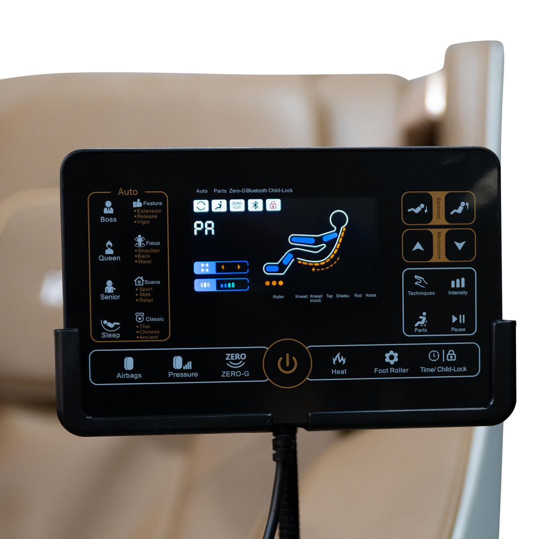 Equipped with 16 automatic programs and a wide range of manual techniques, the chair adapts effortlessly to your needs — whether it’s deep tissue recovery or gentle relaxation. Intelligent body scanning ensures that every session is tailored to your body, while full-body airbags and dedicated calf and foot rollers enhance circulation and reduce fatigue.